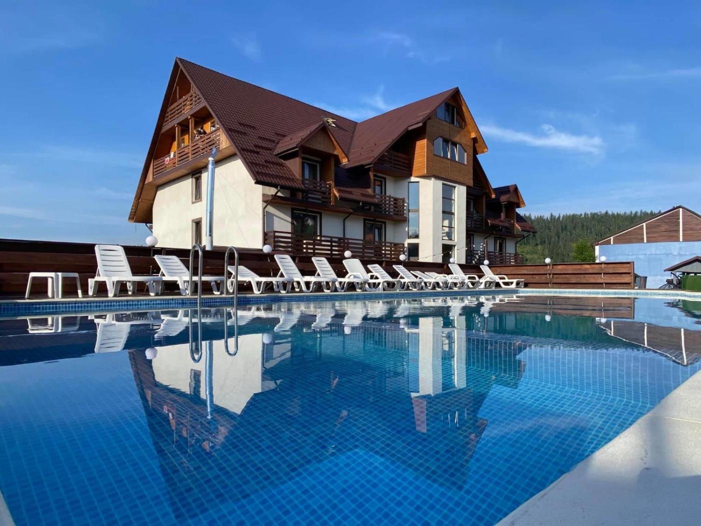 Situated in Bukovel, 31 km from Waterfall Probiy, Готель Поляницький features accommodation with a seasonal outdoor swimming pool, free private parking, a terrace and a restaurant. 32 km from Museum of Ethnography and Ecology of the Carpathians and 33 km from Elephant Rock, the property offers ski storage space, as well as a bar. The hotel has a hot tub, room service and free WiFi throughout the property.