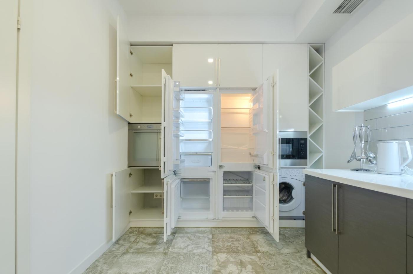 One-Bedroom Apartment. This spacious apartment comes with 1 living room, 1 separate bedroom and 1 bathroom with a shower and free toiletries. Meals can be prepared in the well-fitted kitchen, which features a stovetop, a refrigerator, a dishwasher and kitchenware. The apartment features a washing machine, soundproof walls, a dining area, a flat-screen TV, as well as city views. The unit has 2 beds. ;