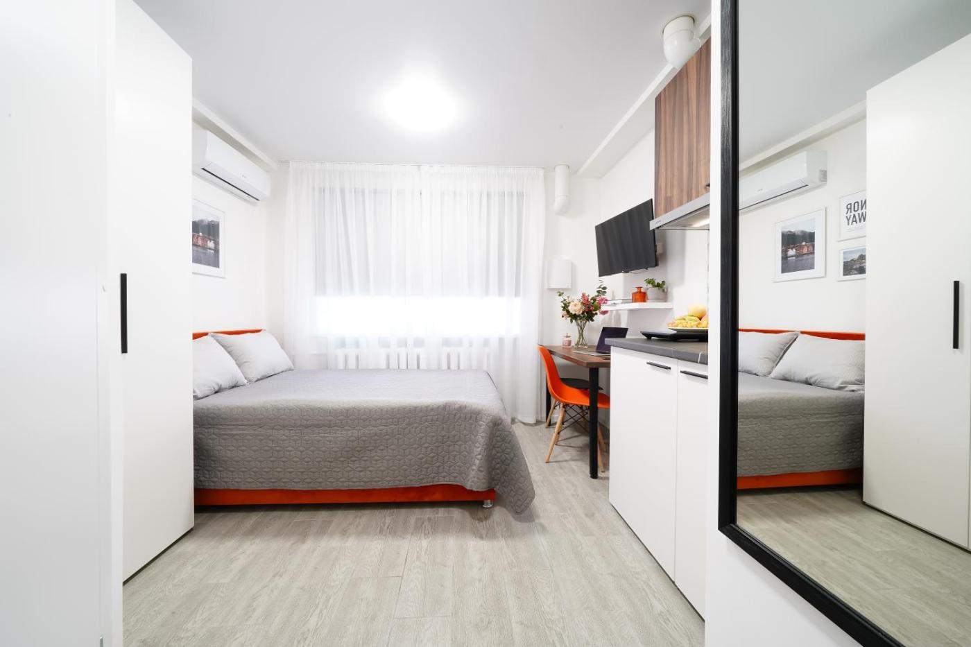 One-Bedroom Apartment. The air-conditioned apartment features 1 bedroom and 1 bathroom with a shower and a hairdryer. The fully equipped kitchen has a refrigerator, kitchenware, a microwave and an electric kettle. This apartment provides a washing machine and a flat-screen TV. The unit offers 1 bed. ;