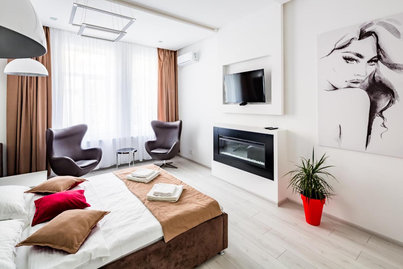 In the centre of Lviv, located within a short distance of The Ivan Franko National University of Lviv and Mariya Zankovetska Theater, Avangard Kulisha 15 Apart offers free WiFi, air conditioning and household amenities such as a stovetop and kettle. The property has garden and city views, and is 800 metres from Lviv Armenian Cathedral. Staff on-site can arrange airport transfers.