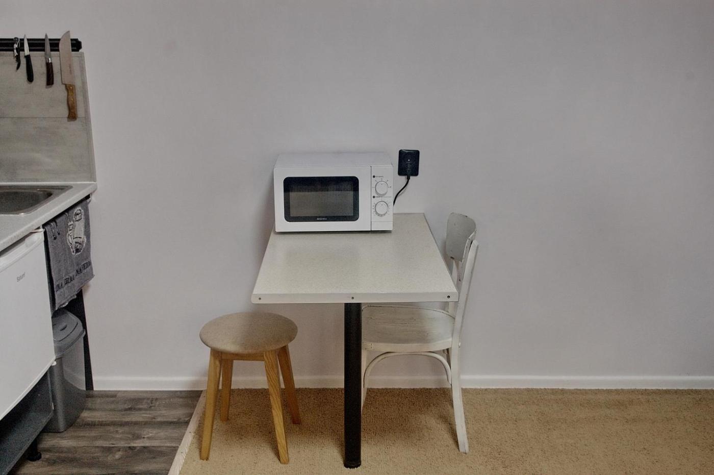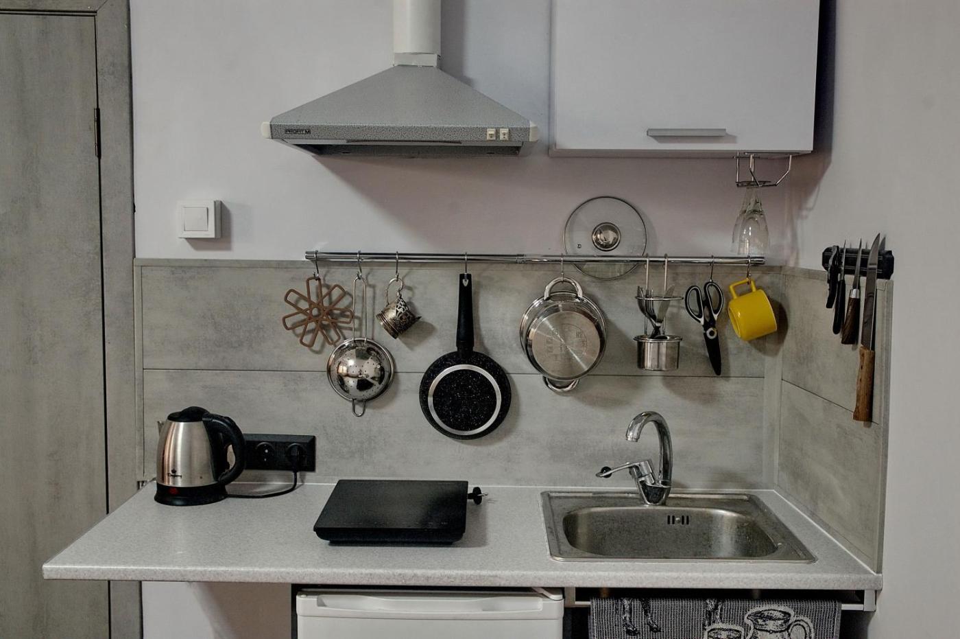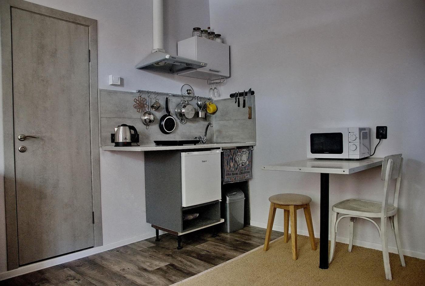 One-Bedroom Apartment. Guests can make meals in the kitchenette that has a stovetop, a refrigerator, kitchenware and a microwave. This apartment is air-conditioned and has an electric kettle and heating. The unit has 1 bed.