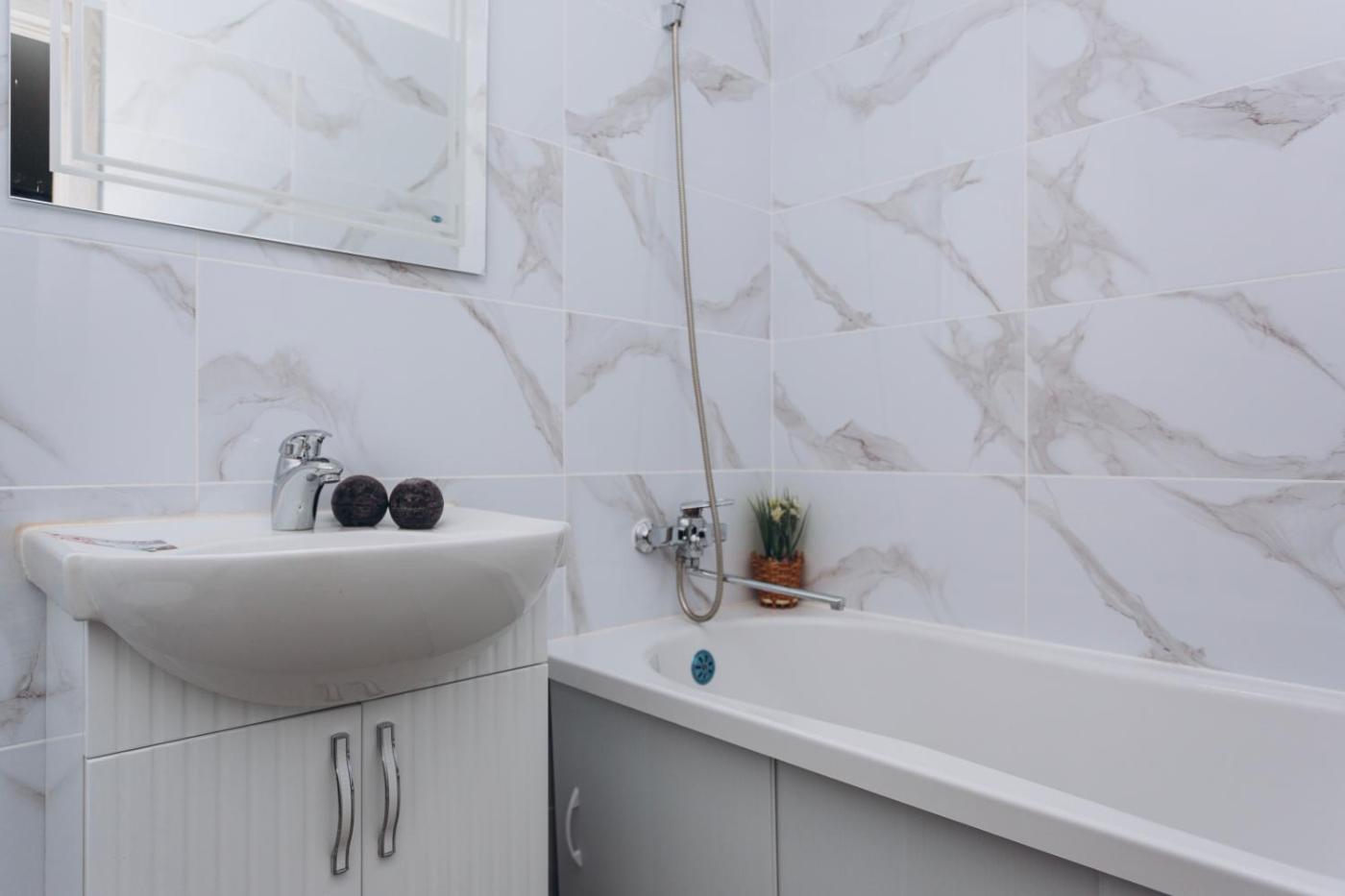 One-Bedroom Apartment. This apartment is comprised of 1 bedroom, a kitchen and 1 bathroom with a bath and a hairdryer. The apartments kitchen is available for cooking and storing food. The apartment offers a washing machine, a wardrobe, parquet floors, heating, as well as a flat-screen TV with cable channels. The unit offers 2 beds.