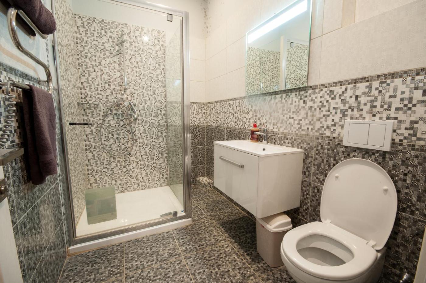 Apartment. The air-conditioned apartment has 1 bedroom and 1 bathroom with a shower and a hairdryer. Guests can make meals in the kitchen that has a stovetop, a refrigerator, kitchenware and an oven. The apartment features a washing machine, a wardrobe, an electric kettle, heating and a flat-screen TV. The unit has 3 beds.